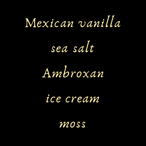 A vanilla heavy scent with a musky depth and slight earthy / mossy under tone. Unique and lovely.