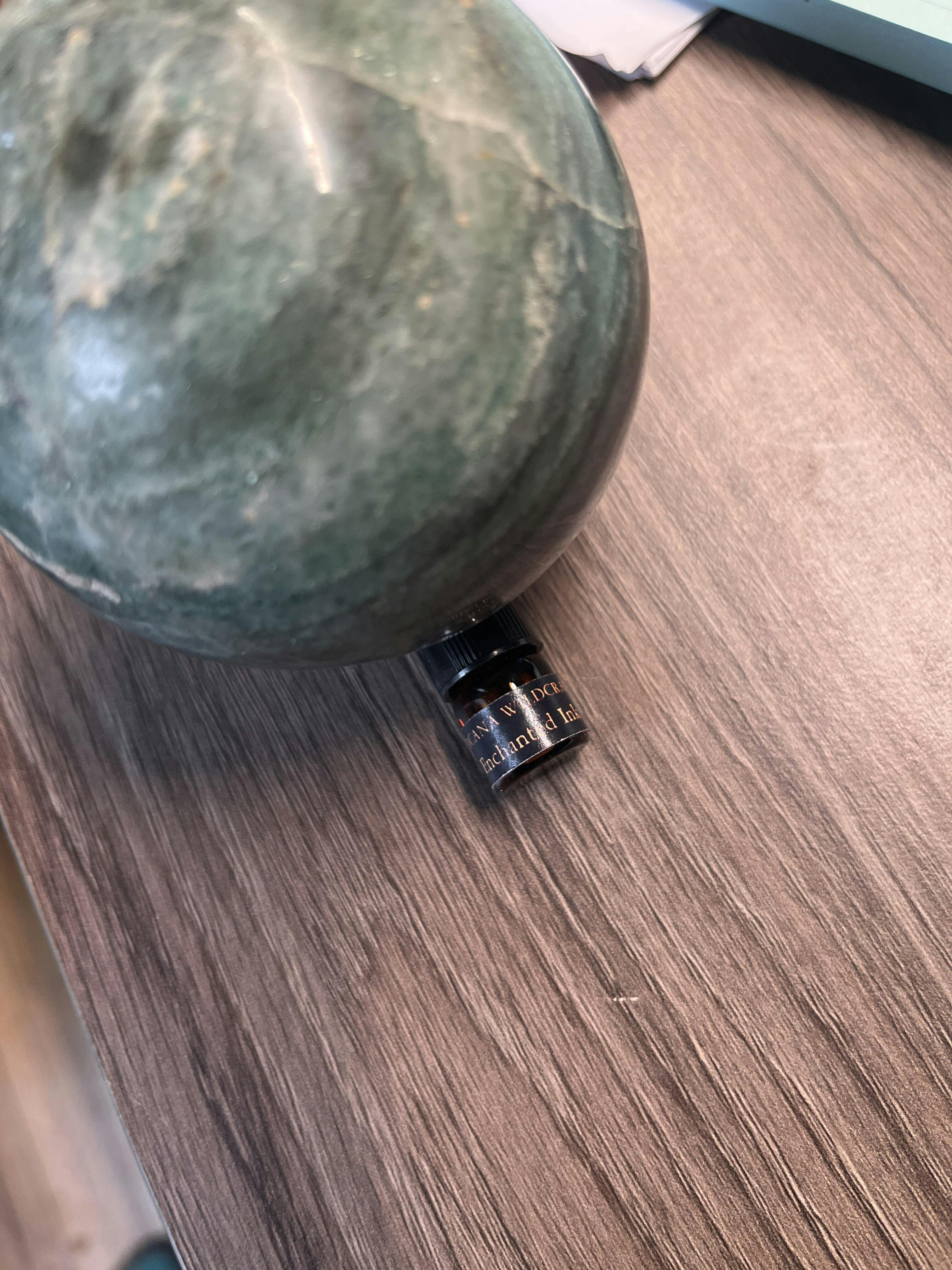 Gorgeous ink scent! It smells fae and magical. This would be amazing for cosplay or DnD. The ink is strong and mossy with a metallic vibe, warm and dark like wrought iron. Incredible throw.